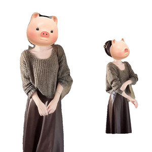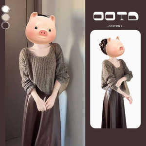 女性の小柄な怠惰感のスーツは秋の新型の大きいサイズの優しい風のニットのセーターの茶色の半身のスカートの2つのセットに入ります。