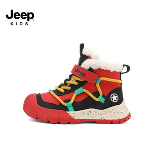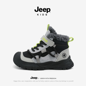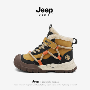 Jeep儿童大棉鞋男童雪地靴冬季加绒鞋子2025新款防水皮面女童鞋子