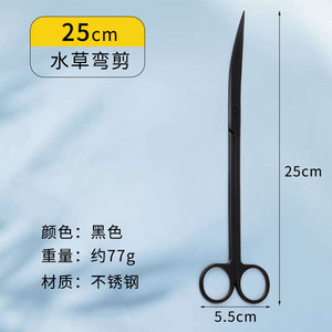 黒 25cm 薄頭滑り止めハンドル水草湾曲ピンセット