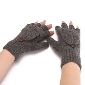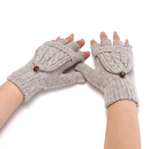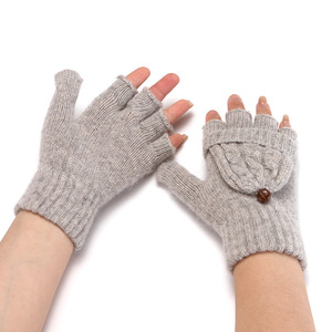 クロスボーダーニット手袋女性カバーかわいい両用ウール手袋冬保温半指漏れウサギ毛手袋