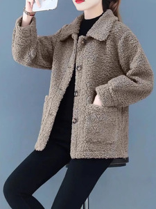 春秋の子羊の毛の女性の短いコートの女性の新型の粒の羊毛の毛皮の一体の大きいサイズのゆったりしている上着