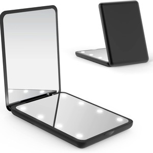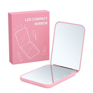 人気の携帯用LED化粧鏡、ライト付き、2倍・3倍拡大、手持ちミニギフト、正方形小型折りたたみ鏡