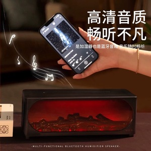国境を越えた新製品暖炉炎加湿器bluetoothスピーカー家庭用寝室のデスクトップ霧加湿機アロマギフト