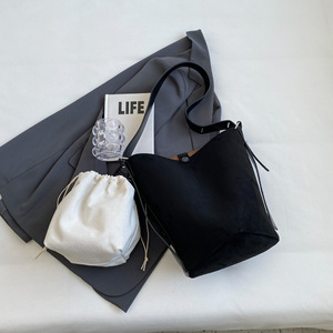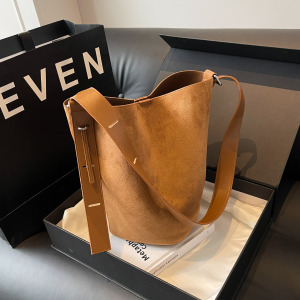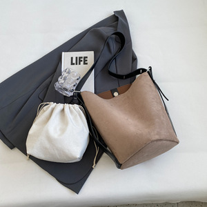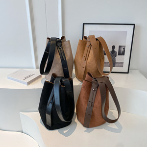 今年はスエードのバケツバッグが流行しています。