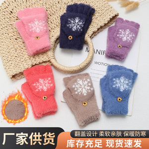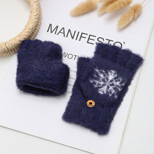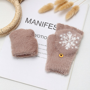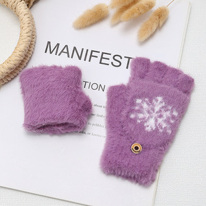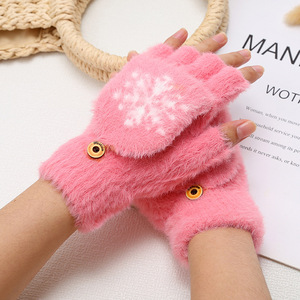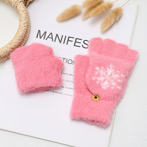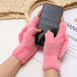 ミンクの毛をまねる秋冬のニットの手袋の半分の指はふたをひっくり返してタッチパネルの手袋に行くことができます。