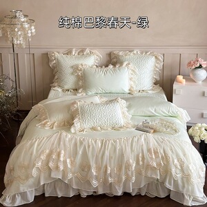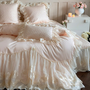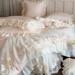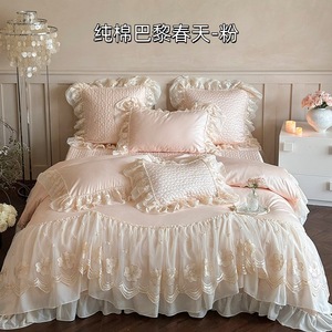 少女心140Sロングコットン四点セットフレンチレース立体花純綿布団カバーベッドスカートタイプベッド用品ピンク