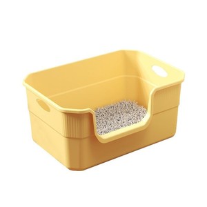 アップグレードされた厚みのある黄色の中型猫トイレ 42CM (猫砂スクープ付き)