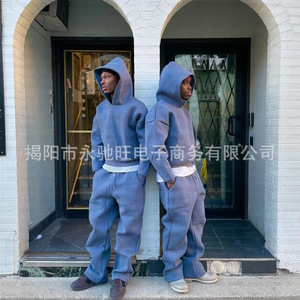 ファッションスポーツゆるいガーディアンパンツセットアメリカのレトロな個性的な街頭レジャー純色シンプルなフード