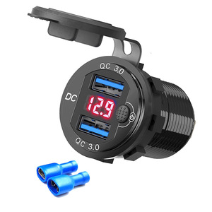 自動車車載充電器改造携帯電話充電アルミ合金ダブルusbスイッチデジタル電圧計防水