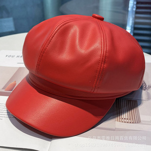 ファッションネットの赤いPUの復古の皮質の八角の帽子の子供の秋冬の日の英倫PUのアヒルの舌の帽子の韓国の版の画家の子供の帽子を報告します。