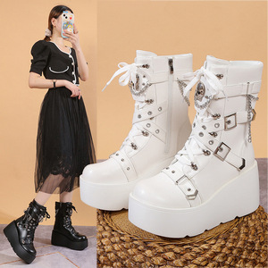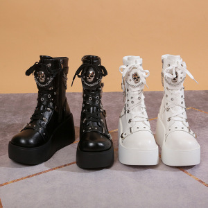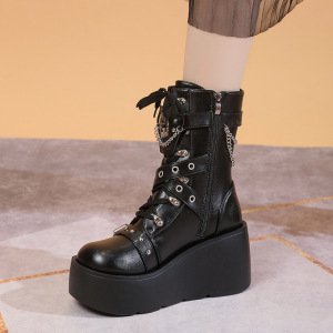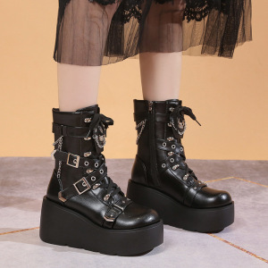厚い底の松餅のショートブーツの女性の秋の新型の9cmは高くなってパンクします。