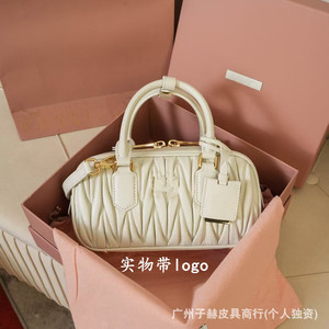 原厂Miu系女包Arcadie羊皮皱褶保龄球小方包波士顿手提单肩斜挎包