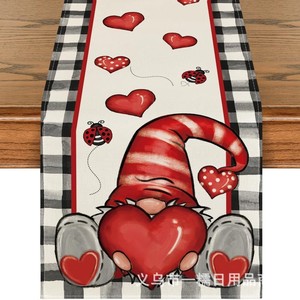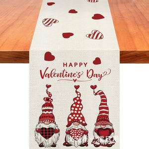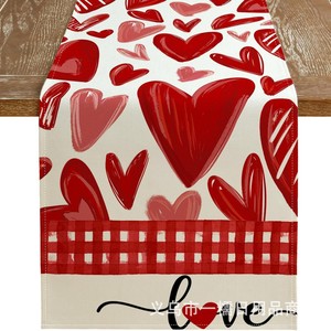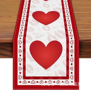国境を越えた新しい亜麻テーブル旗バレンタインデー家庭レストランのリビングテーブル室内屋外の祝日装飾テーブルクロス