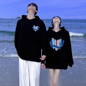 秋冬oversize加绒连帽卫衣男女上衣特别情侣装潮牌班服保暖打底衫