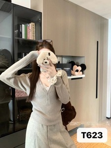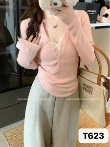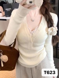 纽扣锁骨衫心机设计V领修身弹力显瘦纽扣针织上衣女装毛织衫工厂