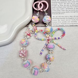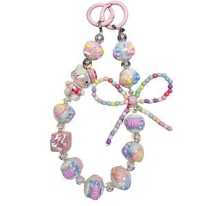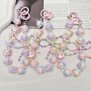 Diy手描きビーズストラップサンリオハローキティバッグチャームins蝶結びビーズキーホルダー