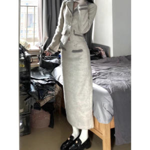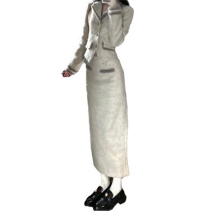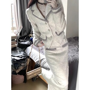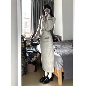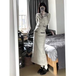 富家千金小香風毛は女性の秋冬の雰囲気感を合わせて、スーツのコートの半身のロングスカートの2つのセットです。