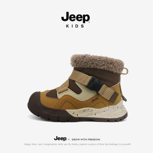 Jeep儿童雪地靴2025冬季新款大棉鞋男童保暖棉靴女童东北加绒棉鞋
