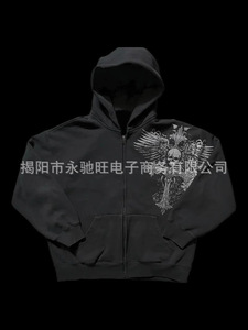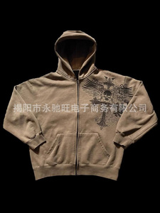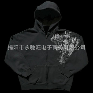ファッションヒップホップ運動ファスナー上着アメリカレトロ個性街頭暗黒風プリントコート男女