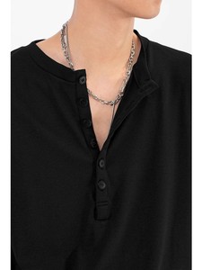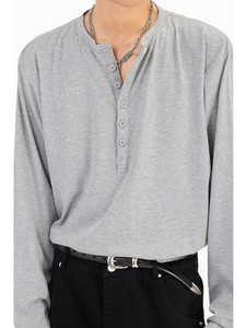 アメリカの半分のボタンの男性の怠惰な風のヘンリーの襟の長袖のtシャツの緩み感のドアの襟の襟は底のヘンリーのシャツの潮を打ちます。