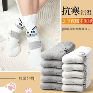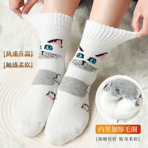 女性の秋冬の中筒の靴下とベルベットの厚い保温の毛の靴下の漫画の猫の男性の靴下
