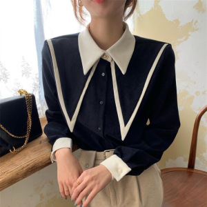 長袖のシャツの春秋の新型の韓系学院の風は色を合わせて襟を返します。
