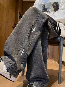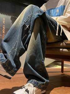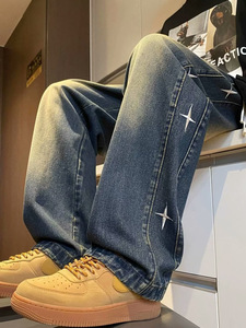 男性hiphopアメリカのレトロな星のジーパンの男性の秋冬の2024の新型のゆったりしているストレートなズボンのファッションのブランドの男性