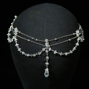 オリジナルデザインの少量の水ドリルの数珠の新婦の頭飾りの美しい気質のバロックの復古の水滴の流蘇の額飾り
