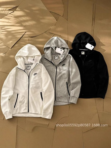 小勾春秋新作レディース帽子付きゆったりファスナー小LOGOエンボス長袖スウェットスポーツコート