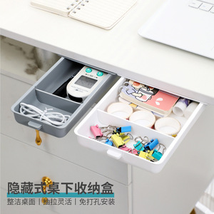 隠されたテーブルの下の引き出し式の収納箱の学生の机の穴を開けないで置物の文房具箱の机に引き出しを付けます。