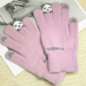 パンダかわいいベルベット厚手手袋女子ins保温学生自転車防風防寒タッチパネル冬男