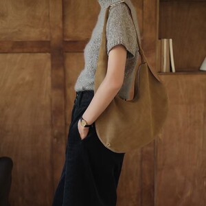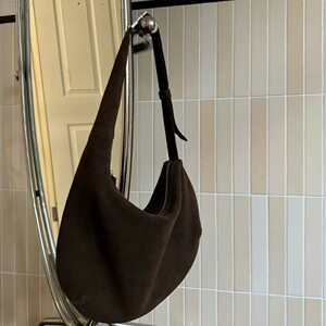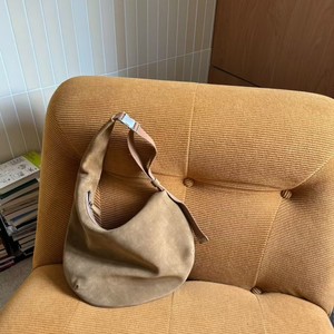 韩版小众复古麂皮绒面月牙包包饼包手提单肩包