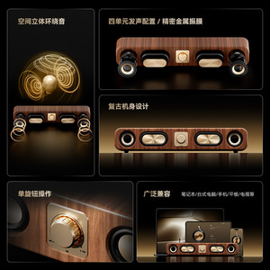 Hewitt M16 プライベートモデル木目調 Bluetooth スピーカー卸売ホームカードステレオデスクトップレトロ Bluetooth スピーカー