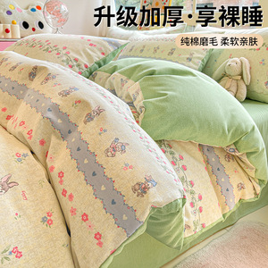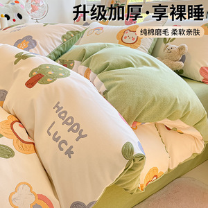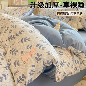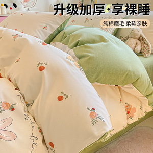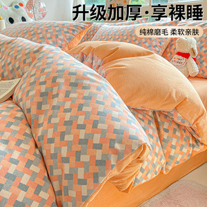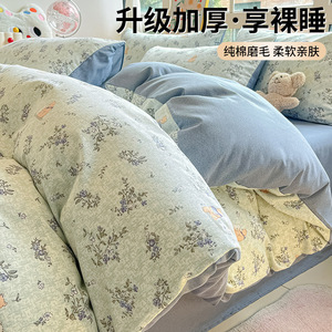 秋冬の寝具四点セット純綿純綿純綿磨毛ベッドカバー布団カバーシーツ寮三点セット
