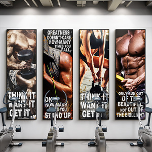 スポーツ宣伝健美ポスター装飾画白黒壁画激励志筋肉男掛け画風美女壁面ジム