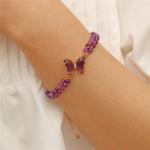 蝶部品のブレスレット4mm人工水晶ビーズ二重編みとセーターの手串欧米の人気卸売り
