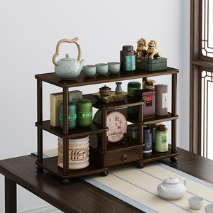 中国式のデスクトップの木の博古棚のお茶の葉の棚の小型の物置棚の装飾品はお茶の杯のティーポットを飾って棚を置きます。