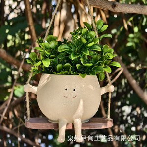 クロスボーダー热い贩売かわいい小さなブランコ植木鉢庭ガーデンテラス多肉植物盆栽置物树脂工芸品