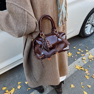 秋冬复古手提包包女士2025新款潮韩国保龄球包简约单肩斜挎枕头包