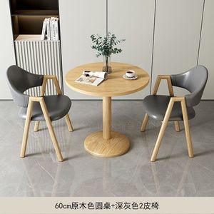 ライトグレー レザーチェア2脚+ウッドカラーラウンドテーブル60脚