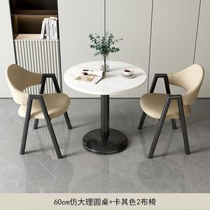 茶色の布製椅子 2 脚 + 模造大理石の丸テーブル 60 台