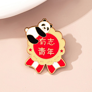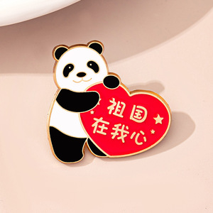オリジナル漫画風建国記念日飾りパンダバッジ愛国的な中国の祝祭ギフト休日アクセサリーメダル服バッグ