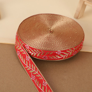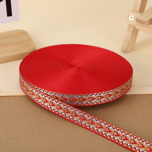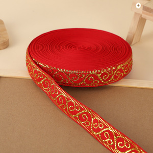 現物中国風民族風大紅お祝いジャカードリボン花の縁帯祝日中国式結婚式服装補助材料