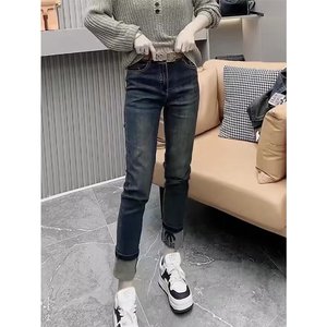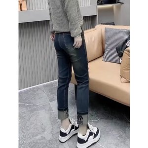 ストレートジーンズの女性の秋の新型の小柄な9分のタバコの管のズボンの大きいサイズの太っているmmはやせているナシの形の体つきのズボンを現します。