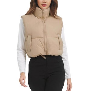 越境貿易婦人服 レディースショート丈綿入りベスト ノースリーブスタンドカラージッパー付きキルティングパッド入りジャケット カジュアルで万能