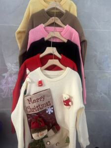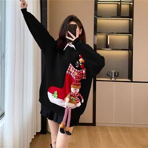クロスボーダーのクリスマスのセーターの女性の冬の新型の中で長いタイプの怠惰な風の丸首の赤い外は大きいサイズのニットの服を着ます。