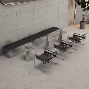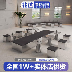 アメリカ式の軽い豪華なミルクティーのテーブルの喫茶店の小さい円卓の現代の簡単なステンレスのベンチのネットの赤いステンレスの家具