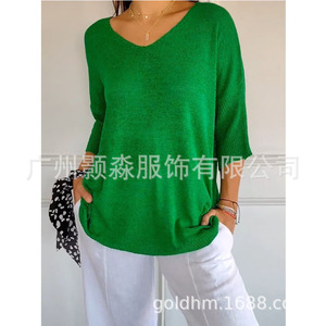 欧米のニットの外国貿易のカジュアルなセーターの多色の基礎の項はやせているvネックの純色のニットの女性の底のシャツを現します。