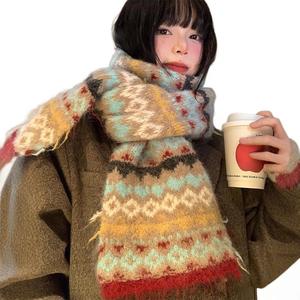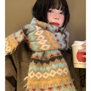 フェア島風ニットマフラーの女性秋冬の高級感が色にぶつかって、保温韓国系の雰囲気感があります。