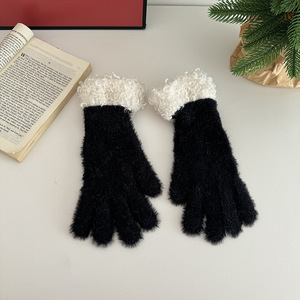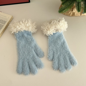 シンプルなぬいぐるみの指の手袋のアイスクリームの色はミンクの毛の柔らかいモチモチのウールをまねて甘い冬の保温の手袋の女性をつなぎ合わせます。